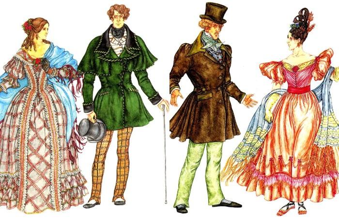 Лаконичность форм, стремление к естественности продержалась около 20 лет. Повлияла античность также на гардероб девушек. В моде платья с завышенной талией, одежда шилась из разных тканей, в том числе из парчи, бархата. Для каждого повода существовал свой наряд, платья для прогулок были закрытыми, сшитыми из плотного сукна. Бальные наряды создавались из легких воздушных тканей, отличались приталенным силуэтом, открытым декольте.