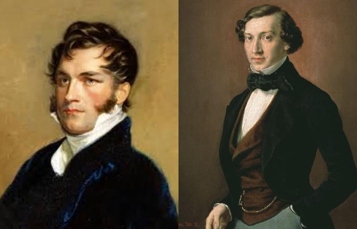 Мужские стрижки, как и костюмы, мало трансформировались на протяжении столетия. Короткие пряди завивали, также использовали прямой пробор. В среде высшего общества принято было носить гладкие укладки, искусственный, глянцевый вид придавался с помощью пудры, масляных составов. В середине 19 века принято было носить волосы средней длины, разделенные на боковой пробор. Сбоку на одной из сторон завивались пряди к лицу. Популярной была прическа а-ля пуританин с залысинами на висках, боковым пробором и аккуратной бородкой без усов.