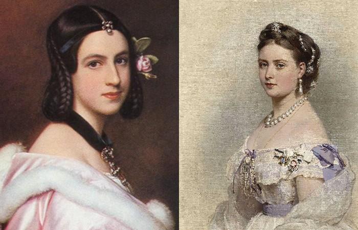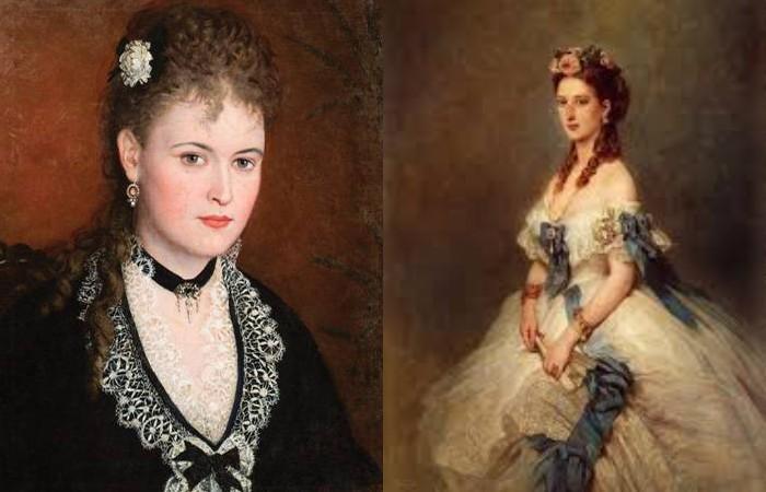 Популярность завоевывают темные оттенки, барышням уже нет надобности высветлят и красить шевелюру. После античных причесок возвращается мода на более сложные модели. Локоны заплетались и выкладывались корзинкой, укреплялась с помощью проволоки. Сама же королева Виктория в молодости предпочитала простую укладку из двух косичек у висков.