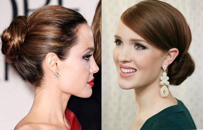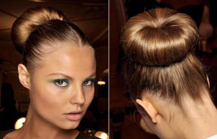 Для редких прямых локонов используется специальный девайс — бублик. Поролоновая насадка позволяет создать объемный пучок. Подходит девушкам с вытянутой, треугольной формой лица, укладка придает элегантность, изящность.