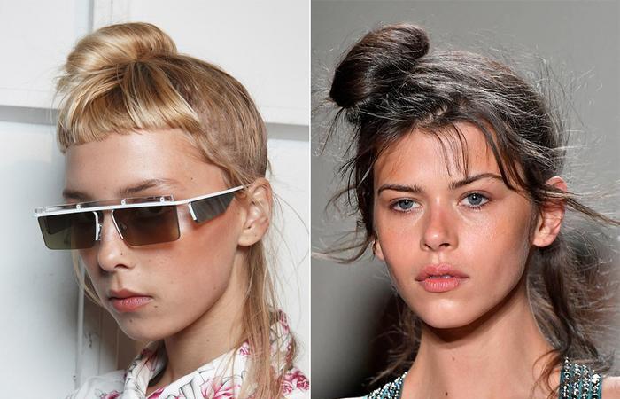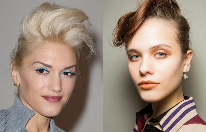 Дерзкие современные укладки состоят из высоких пучков, начесов, стильным станет сочетание с распущенными прядями.