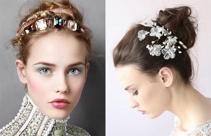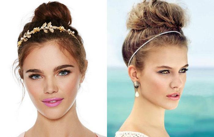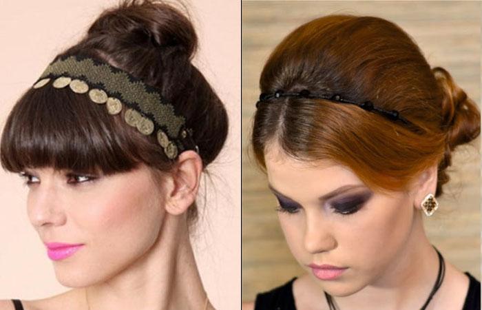 Тонкие ободки сочетаются с высокими пучками, подходят для девушек с выразительными чертами лица.