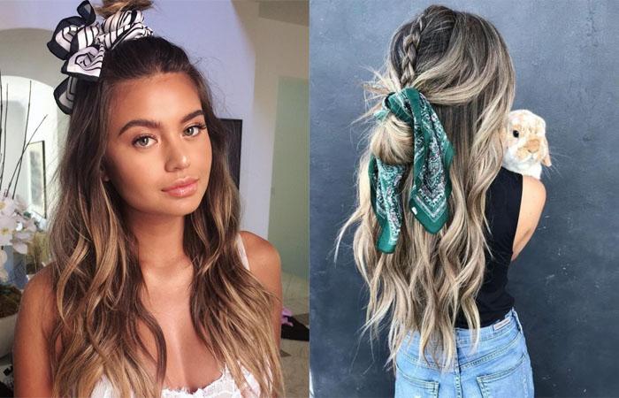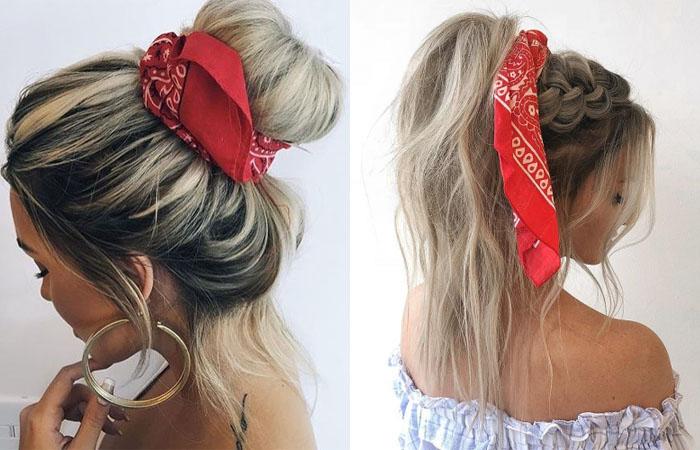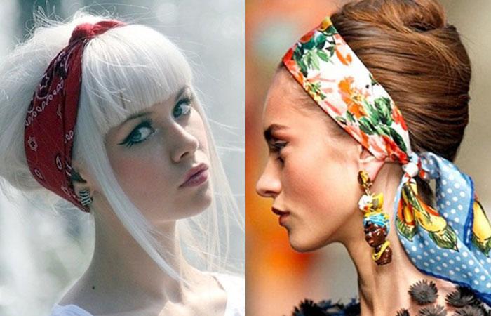 Пин-ап подходит молодым девушкам, предполагает включение модных, ярких косынок, которые скрывают грязные пряди.