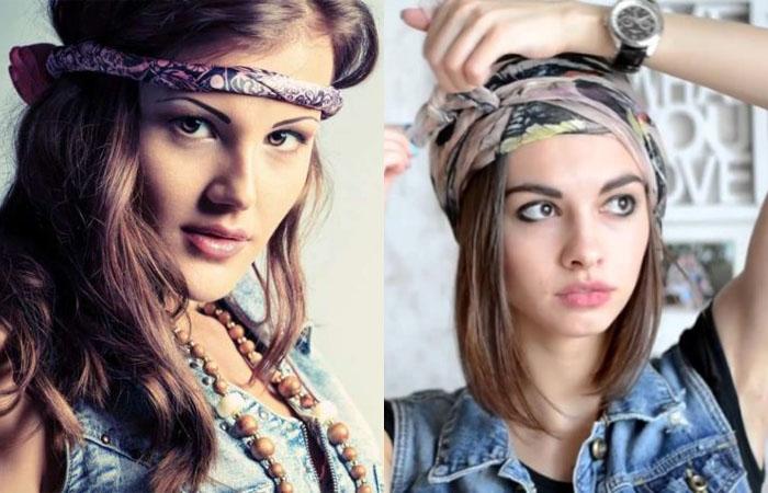 Оригинально завязанная косынка привлекает всеобщее внимание.Этнический колорит прослеживается в косынках-чалмах. Максимально скрывает неопрятные волосы, акцентирует внимание на лице, линии шеи.