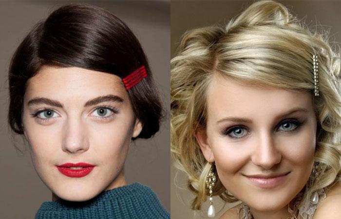 Заколки позволят спрятать челку, гармоничной станет укладка при условии аккуратного, пропорционального лба.