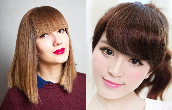 Для круглолицых и барышень с вытянутым овалом закалывать, разделив челку асимметричным пробором.