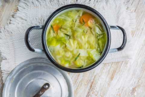 - Капустный супчик. Несмотря на то, что на приготовление данного блюда уйдет минимальное количество сил и времени, его необычный вкус придется по нраву даже истинным гурманам. Для создания простого шедевра необходимо мелко нарезать или нашинковать на терке по двести пятьдесят граммов цветной и белокочанной капусты, небольшой корешок петрушки, пару перьев зеленого лука, небольшую головку лука репчатого и одну морковку. Имеющиеся компоненты залить очищенной водой и варить на протяжении тридцати – сорока минут после закипания. Соль и специи рекомендуется добавлять в соответствии с личными вкусовыми предпочтениями. А при помощи блендера можно превратить это блюдо в ароматный и шелковый суп – пюре.