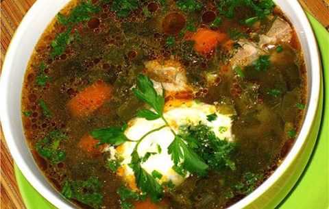 Зеленый борщ со сметаной – идеальный вариант сытного и вкусного обеда или ужина.