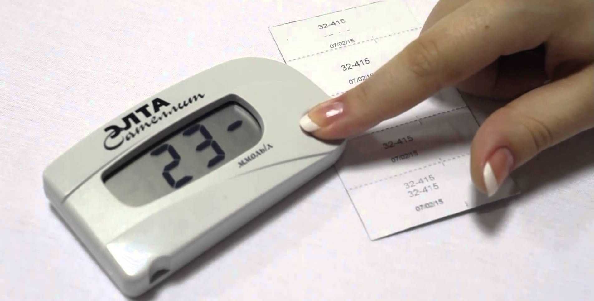Раствор с заведомо известной цифрой сахара наносят на полоску для образцов и производят исследование, учитывая погрешность данных (от 5 до 15%).