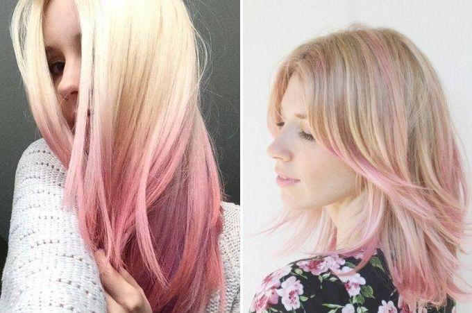 Для светлых русых локонов подбирайте нежные цветовые оттенки. Тем, у кого пшеничный или выраженный пепельный цвет, подойдёт ярко-розовый или лососевый вариант из палитры. При этом следите, чтобы переход от естественного цвета к насыщенному был плавным.