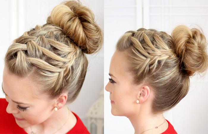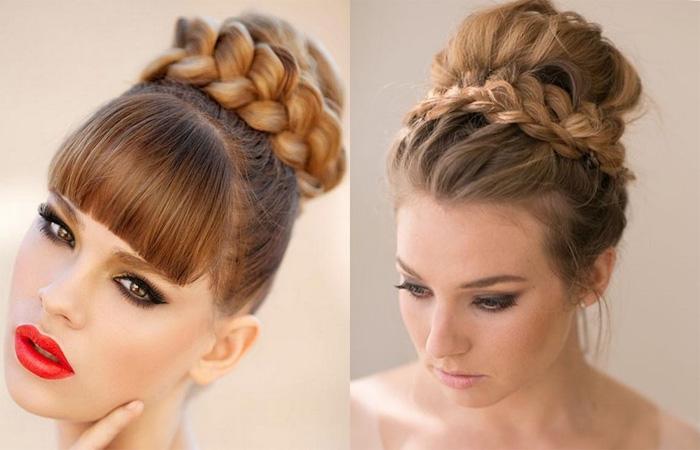 Еще один совет! Украсить пучок, придать образу загадочности, неординарности поможет коса. Это может быть тонкая коса, сплетенная из отдельной пряди, и добавленная в пучок, или же плетение будет переходить в «гульку» — решать вам, оба варианта смотрятся по-своему интересно. Мы подготовили для вас подборку удачных и модных пучков с плетением.