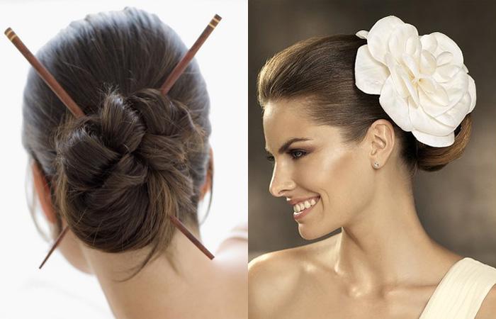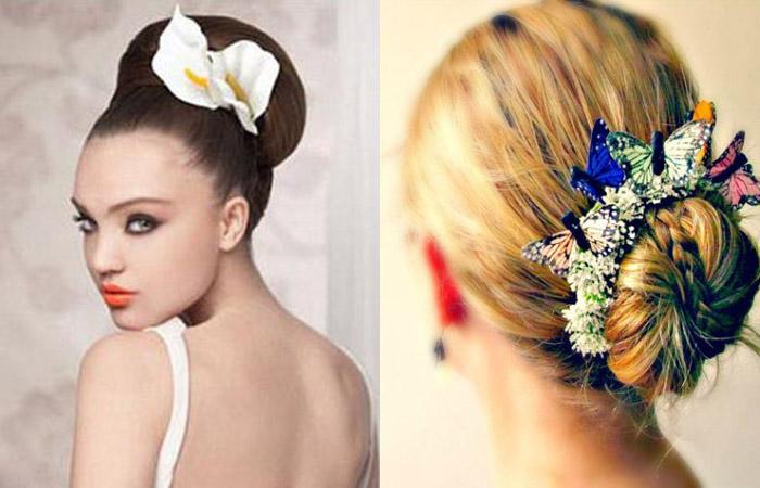 Разнообразить внешний облик и украсить укладку помогут банты, ажурные заколки, ободки, ленты, прочие аксессуары, главное — не переусердствовать. Стилисты настаивают все же на минимализме. Крупный цветок в волосах или несколько ажурных шпилек будет достаточно, чтобы образ выглядел изысканно и неповторимо.