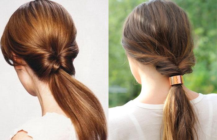 - Низкий хвост. Смотрится укладка интересней, если резинку скрыть тонкой прядкой.