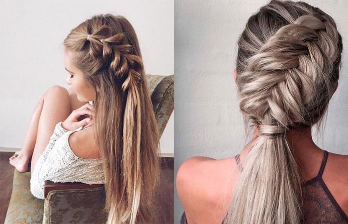 - Не бойтесь экспериментировать, смешивать виды основных причесок. Например, завяжите хвост, а концы заплетите по технике плетения «рыбья коса».