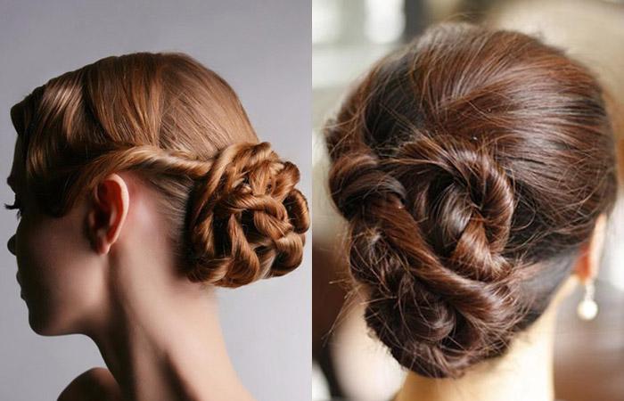 - Укладка «Испанский узел» — отличный способ аккуратно уложить длинные волосы в жаркую погоду. Вам нужно собрать волосы в низкий хвост, разделить на пряди, закрутить каждую жгутом, аккуратно уложить и зафиксировать невидимкой.