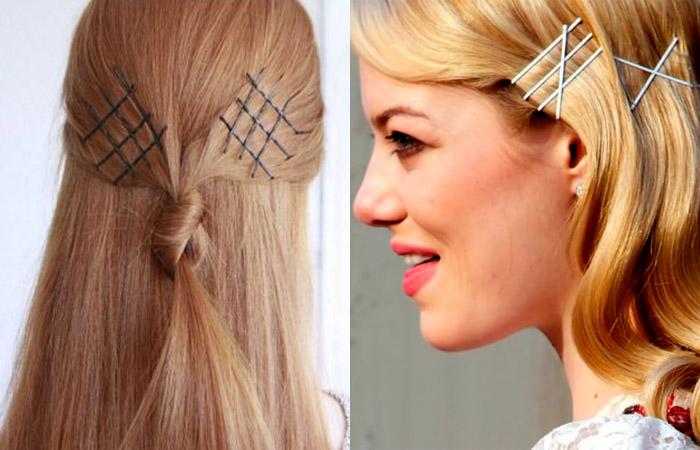 - Для повседневного образа можно использовать обычные невидимки или простые, незамысловатые заколки треугольной, квадратной или круглой формы.
