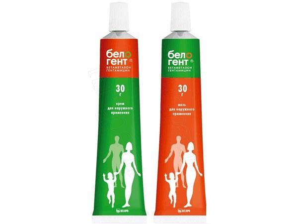 - Белогент. Мазь с гентамицином и бетаметазоном. Купирует воспалительные процессы, налаживает здоровый обмен веществ в пораженных участках кожи. Стоимость препарата около 250–450 р.