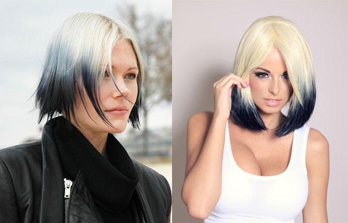 Если вы желаете экстраординарную причёску, то выкрасите кончики в бирюзовый, чёрный или синий цвет.