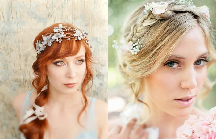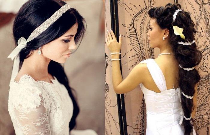 Выбор аксессуаров зависит от концепции свадьбы. Для классических образов используются ленты, цветы, бисер, стразы, диадемы, обручи. Креативные невесты стремятся воплотить оригинальные идеи. В качестве украшений используются стильные невидимки, обручи, декорированные заклепками.