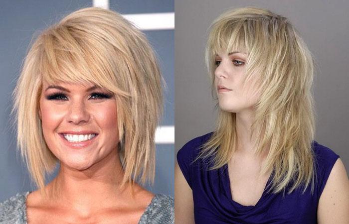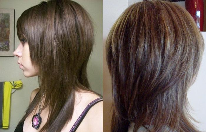 - Для обладателей удлиненного, треугольного лица волосы срезают под прямым углом к уровню головы. Это обеспечит плавный переход длины, позволяющий смягчить угловатость черт.