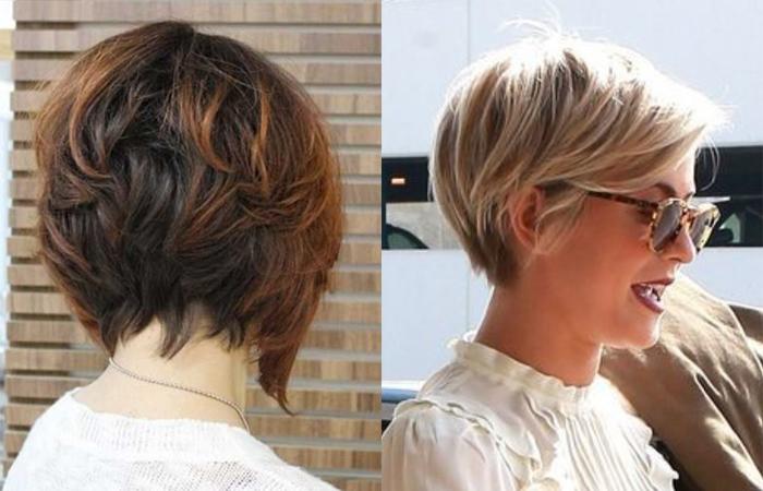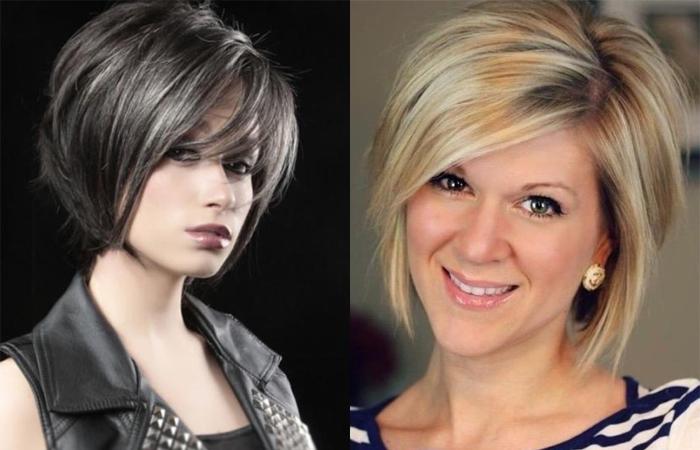 Поскольку градуированный боб универсален для разной длины волос, есть множество вариантов создания этой стильной прически. Дамы постарше могут выбирать стрижку на коротких локонах. Молодым женщинам она тоже подходит, особенно в сочетании с асимметрией. На средней шевелюре возможны любые разновидности боба с градуировкой — с челкой или без. Как правило, пряди в этом случае доходят до середины шеи, но возможен и укороченный вариант. Такая прическа поможет подкорректировать овал лица, если выбрать верную технику стрижки.