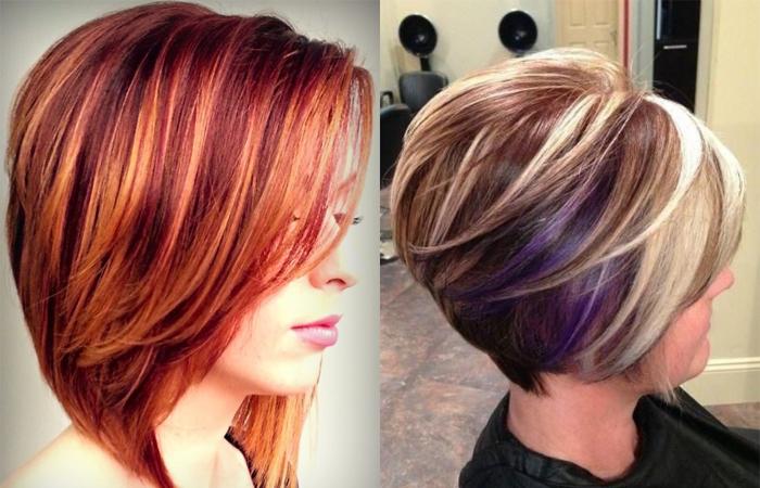 Стрижка, особенно многослойная, гармонирует с контрастными видами окрашивания. Выберите для верхней части волос мелирование, чтобы сделать акцент на отдельных локонах. Удачным будет и колорирование из 3–4 близких оттенков.