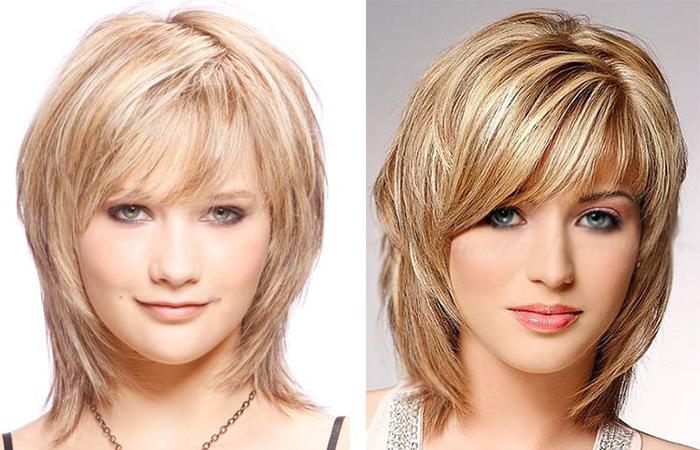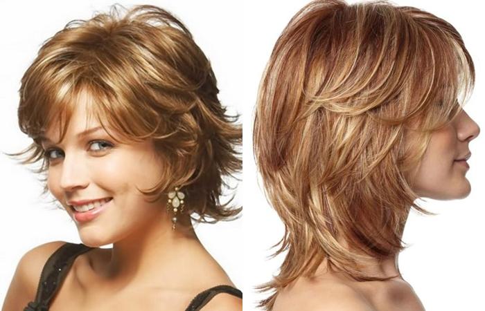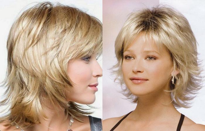 Вариант на средние волосы делают на базе боба или каскада. Мастер стрижет основную модель, дорабатывает прическу с помощью обильной филировки, градуировки.