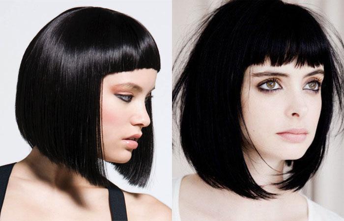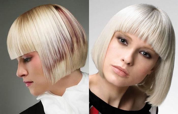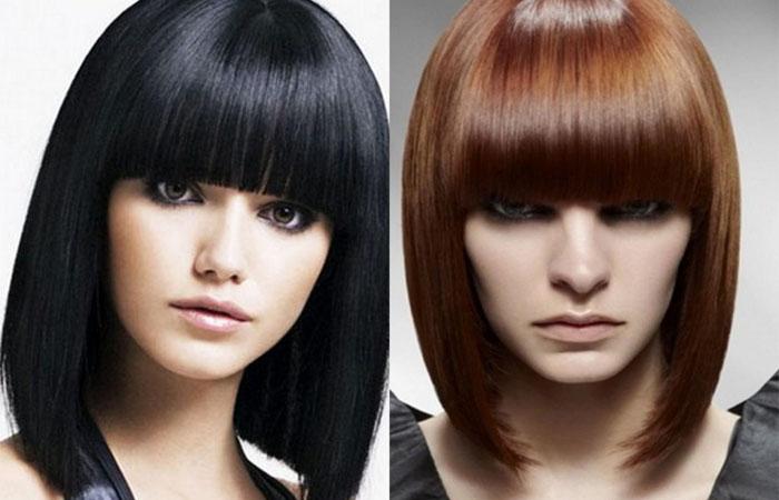 Классическое каре с челкой идеально для создания строгого образа. Четкий контур укажет на внутреннюю силу, загадочность. Эти свойства максимально подчеркнет окрашивание в темные оттенки с блеском. Брюнетки с ровным контуром волос выглядят особенно обворожительно. Варианты средней длины красиво смотрятся в тонах блонда.