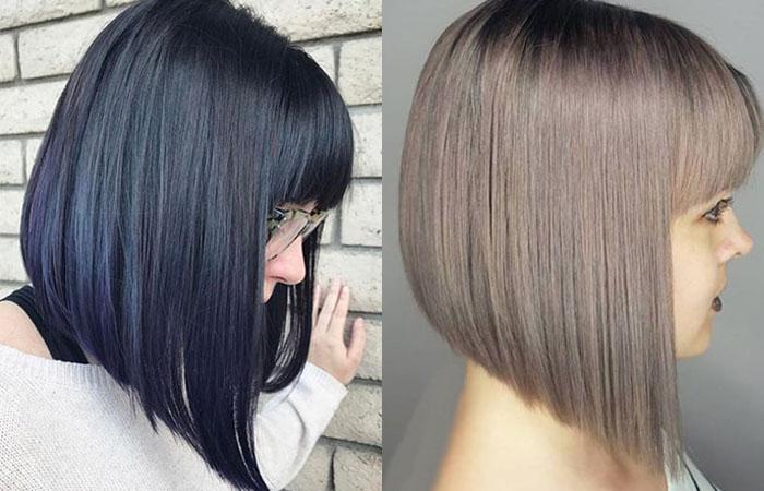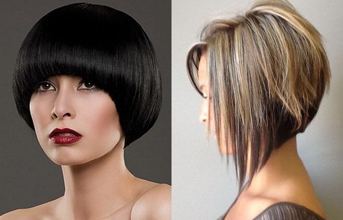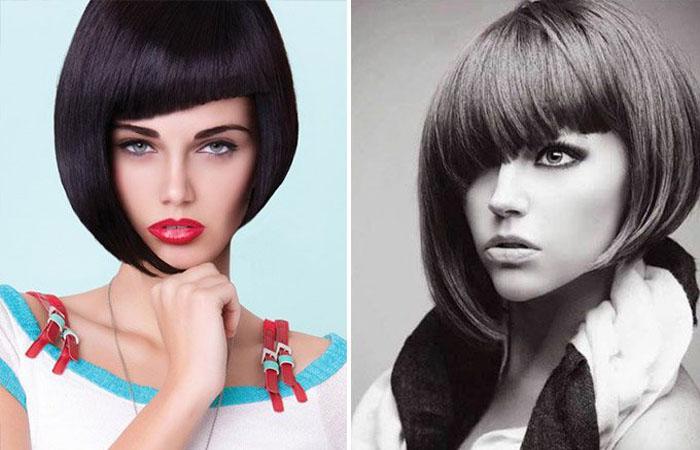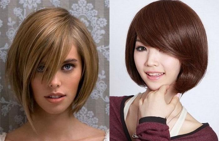 - Короткие варианты с четкими границами подходят миниатюрным дамам с утонченными чертами, изящной шеей. Градуированную или каскадную модификацию выбирают зрелые женщины. Предпочтительна ровная структура волос. Длинная косая или прямая челка слегка подкорректирует полноту, скроет возрастные изменения в верхней части лица. Боб или каскад с объемом на макушке подойдут для тонких волос.