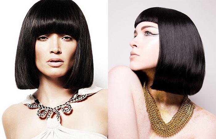 Именем египетской царицы называют классическую форму прически. Стрижка спускается чуть ниже подбородка. В качестве укладки концы волос немного подкручивают внутрь. Такое каре подходит обладателям овального, круглого лица. Четкая геометрия способна подчеркнуть угловатость черт. Черный — идеальный выбор цвета волос для создания образа Клеопатры.