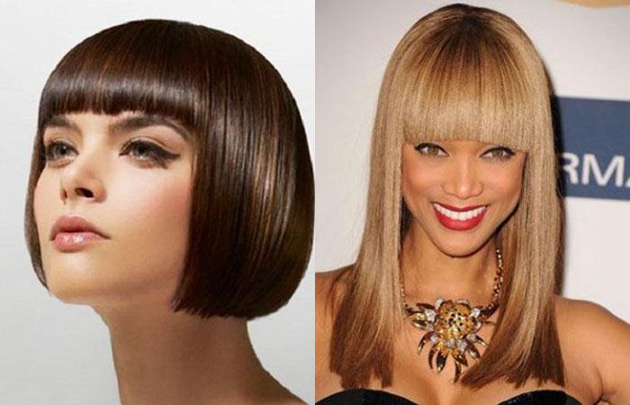 Каре с челкой выполняют на любую длину волос. Короткие модификации подходят хрупким девушкам с тонкими чертами лица. Сзади популярен срез в форме боб. Варианты средней длины носят обладательницы крупных черт. Длинные стрижки традиционной формы подчеркивают неординарность.