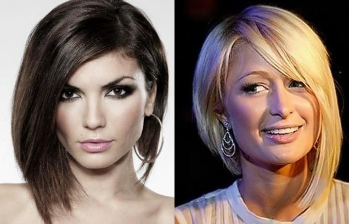 - асимметричное удлинение подходит для хрупких, стройных девушек, также для барышень с формами, можно визуально вытянуть линию шеи, гармонизировать силуэт;