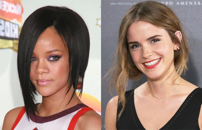 Модель «Москвичка» выбирают творческие личности, эксперименты с имиджем часто проводят представители звездного Олимпа. Рианна регулярно меняет цвет волос, стрижки, асимметричные пряди позволяют скорректировать круглое лицо. Тейлор Свифт предпочитает классические варианты с удлинением к лицу в ретростиле. Эмма Уотсон выбирает стрижку без челки, филированные срезы придают легкость и небрежность образу.