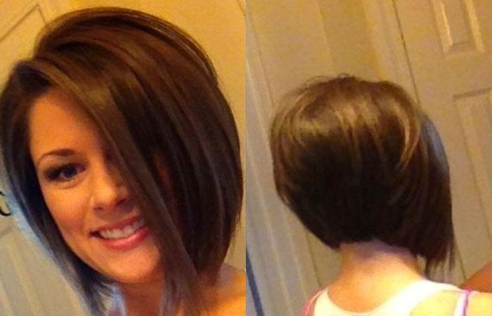 - На затылке подстричь волосы со смещением от меньшей стороны к большей. Разница в уровнях должна составлять до 2 см. Область шеи можно выбрить или подстричь с увеличением длины к макушке. Выполнить треугольную окантовку.