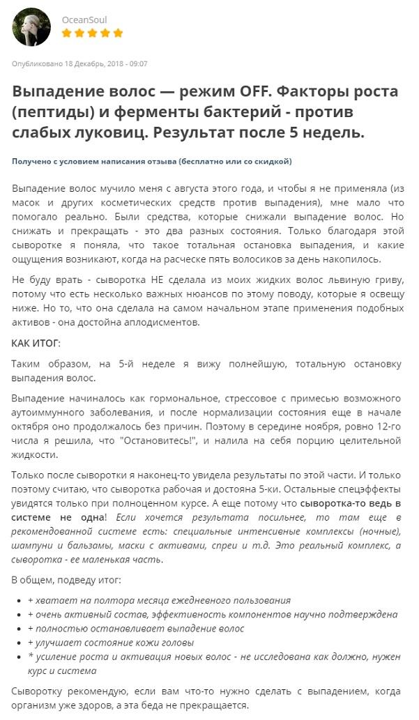Только положительные стороны сыворотки отмечает следующая клиентка. Особое внимание девушка обращает на прекращение выпадения волос.
