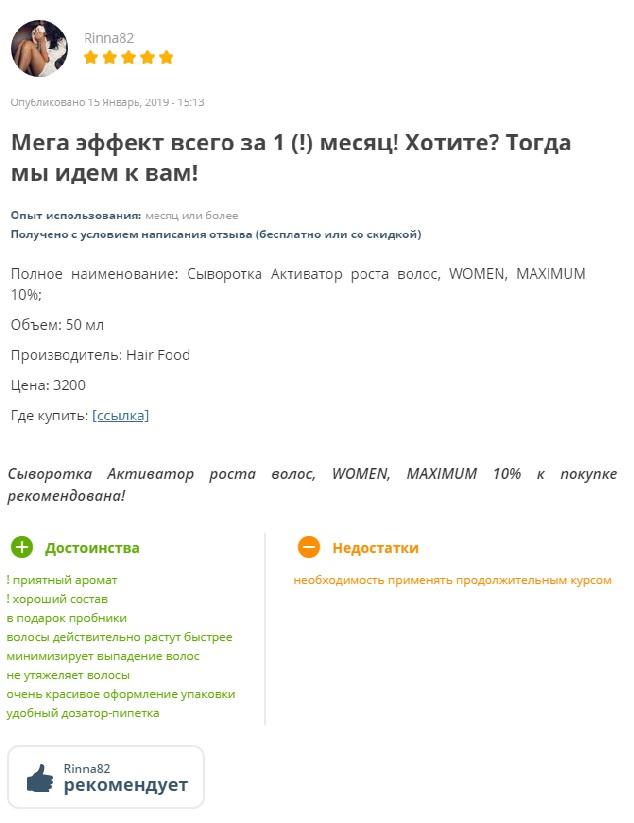 Отзывы об инновационном продукте исключительные. Клиенты нахваливают формулу средства, отмечая заметное улучшения качества и структуры шевелюры, замедление выпадения и усиленный рост волос.