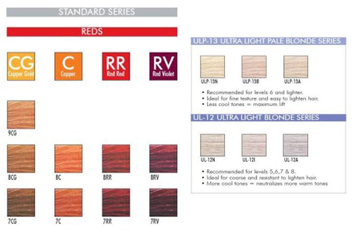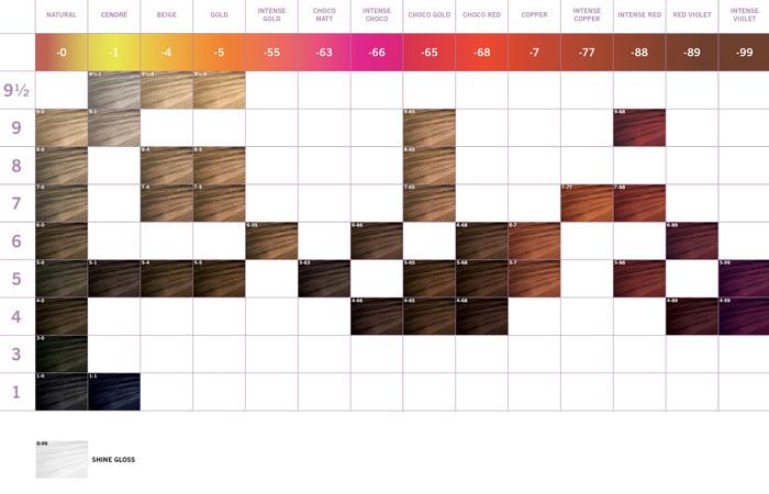 Смешивается с активатором. Стоимость тюбика — около 820 рублей, активатора — около 1000 рублей за 1 л. Палитра представлена разнообразием нейтрализующих, золотых, бежевых, ореховых, медных, красных и сливовых оттенков.