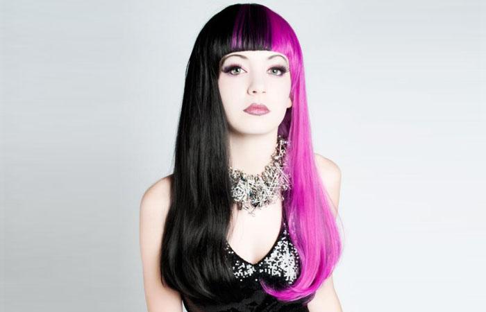 Двойное окрашивание — локоны делят на две части, каждую из которых тонируют своим цветом. Сочетание может быть черно-белым, сине-зеленым или любым другим.