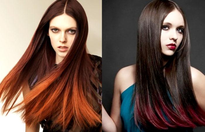 Брюнетки и шатенки, девушки с каштановыми волосами могут использовать не только яркие шоколадные, тициановые, кофейные, медовые цвета, но и холодную платину, темный пепельный. В приоритете — холодные оттенки. Из необычных, «экстремальных» вариантов — вишня, баклажан.