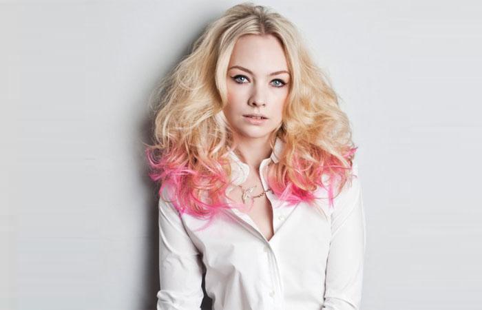 Блондинкам и обладательницам светло-русых прядей рекомендуется выбирать максимум два цвета: темный для подчеркивания естественного оттенка и более светлый. Хороший результат дают розовый, карамельные оттенки. Первый оживит цвет и добавит блеска, а второй оттенит цвет натуральных волос.