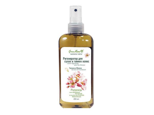 - Регенератор для сухих и тонких волос «Гречиха и малина» Green Mama — настоящее лекарство для поврежденных прядей. Натуральное средство вернет здоровый блеск, позволит забыть о пересыхании, ломкости. Состав обогащен экстрактами гречихи, малины, череды, мяты, комплексом витаминов, микроэлементами. Алоэ и глицерин оберегают стволовую структуру от воздействия высоких температур. После укладки волосы будут радовать блеском и шелковистостью. Приобрести флакончик Грин Мама 250 мл можно за 214 рублей.