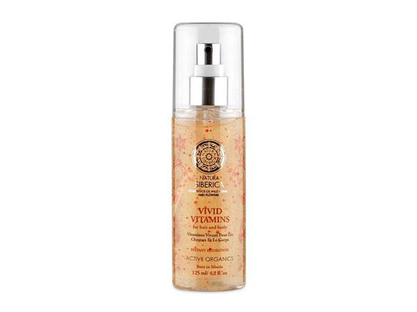 - Спрей для волос «Живые витамины энергия и блеск волос» Natura Siberica — средство для увлажнения сухих, поврежденных локонов. Формула содержит витамины и аминокислоты, вытяжки лекарственных растений Сибири. Экстракты лимонника, календулы, ириса, радиолы розовой, дамасской розы ухаживают не только за локонами, но и за кожей головы. Масло косточек малины и облепихи защищает структуру от воздействия агрессивных факторов среды. Масло арганы обеспечивает спаивание расслоившихся кончиков. Купить 125 мл средства можно за 596 рублей.
