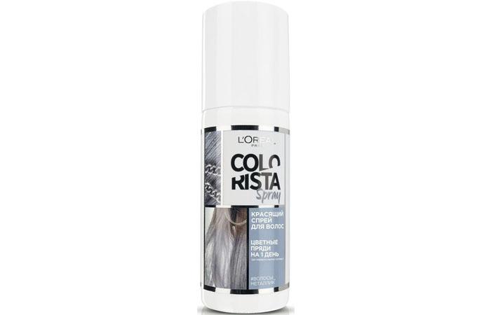 Для большего эффекта и устрашения небольшую прядь спереди отбелите. Для этого воспользуйтесь цветным спреем Syoss Root Retoucher или спреем Colorista Spray L’Oreal Paris (цвет металлик).