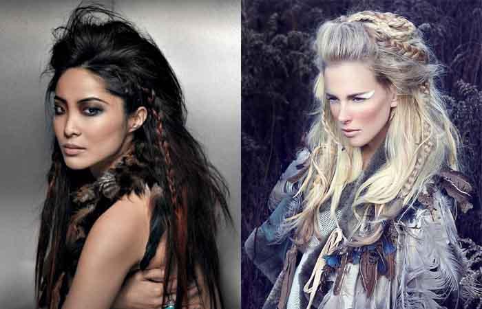 Не менее эпатажный и яркий образ для Хэллоуина — это «ведьма». Эффектно смотрится прическа на длинных волосах. Для ее выполнения волосы у корней начешите, а концы заплетите в косу. Для декора прически можно использовать веточку без листьев, травы или интересные заколки на соответствующую тематику.