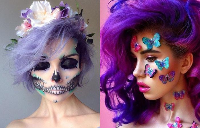 Совет. Яркое окрашивание и интересная укладка — гармоничное сочетание для Хэллоуин. Фиолетовые, розовые, синие, малиновые волосы — то, что нужно для создания модного и неповторимого образа.