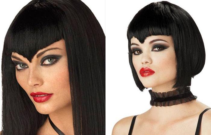 Остроугольная челка — атрибут королевы вампиров. Сдержанность, строгость в прическе гармонично впишутся к демоническому наряду и аксессуарам.