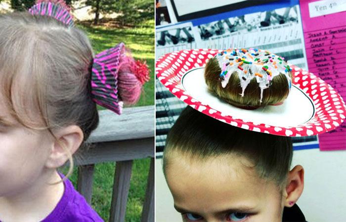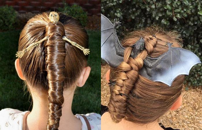 Прически для детей на Хэллоуин отличаются яркостью, смотрятся комично и выразительно.