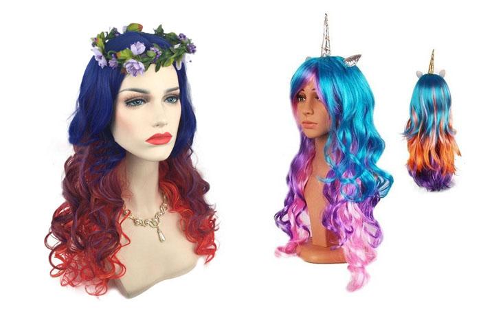 Добавить экстравагантности, яркости укладке помогут накладные локоны ярких оттенков и готовые парики. Очень практично и ярко, и, главное, никакого вреда шевелюре.