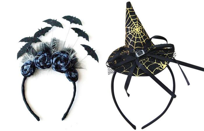 Украсить любую прическу можно аксессуарами соответствующей тематики. Ушки, рожки, шляпки, паучки, бабочки, змеи и другие элементы отлично смотрятся на детях и взрослых.