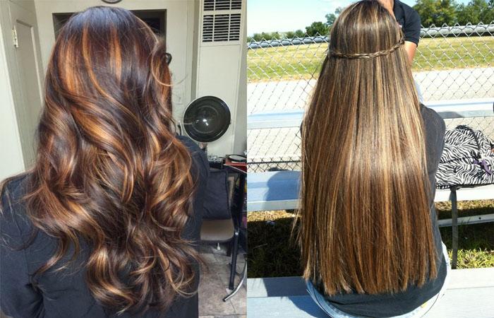 Темноволосым девушкам «теплого типа» подойдут ореховые, карамельные, шоколадные, а также светло-русые тона. Девушкам с темными волосами и «холодным типом внешности» лучше остановиться на пепельно-русых, платиновых, темно-русых оттенках.